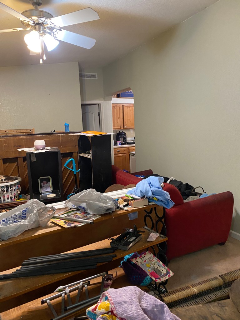 I think one of the hardest parts of this was the fact that we still had to live in the house while we were painting it. I didn’t have anywhere to move the furniture to, so it just got shoved from one side of the room to the other. The kids also loved climbing all over the furniture. I worried about if I had put the pictures in a safe enough spot so that they wouldn’t get broken before I could get them back up onto the walls. All in all, it was worth it, but be prepared, next time you go to do a project, it just may turn into an adventure reminiscent of a children’s story.
