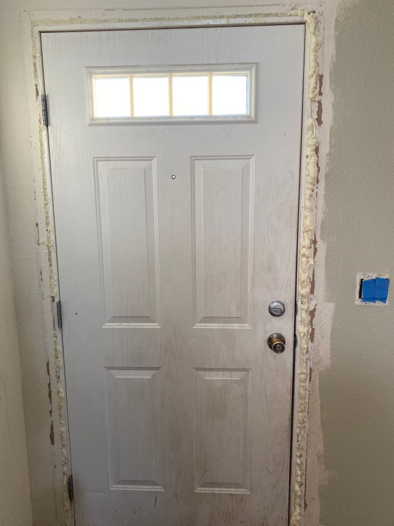 She will also bring up either painting or getting new door moulding. You decide on new moulding, so after work you head to the home improvement store again to get baseboards and door moulding. When you get home and take the old moulding off you realize that the drywall is not level with the door frame and you need to smooth out the gap.
